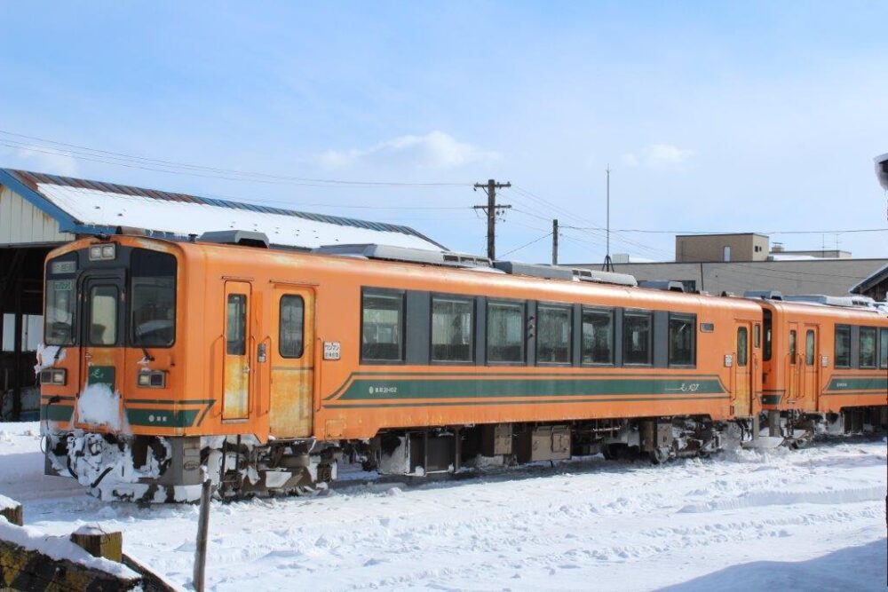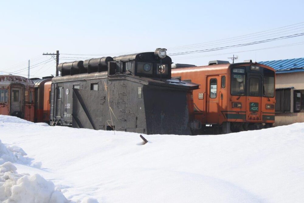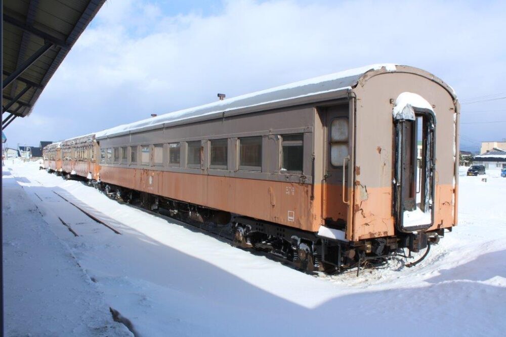 ストーブ列車はオハフ33-1、オハ46-2、オハ46-3の3両が在籍しています。牽引機はDD350形ですが津軽21形が代走することもしばしば。