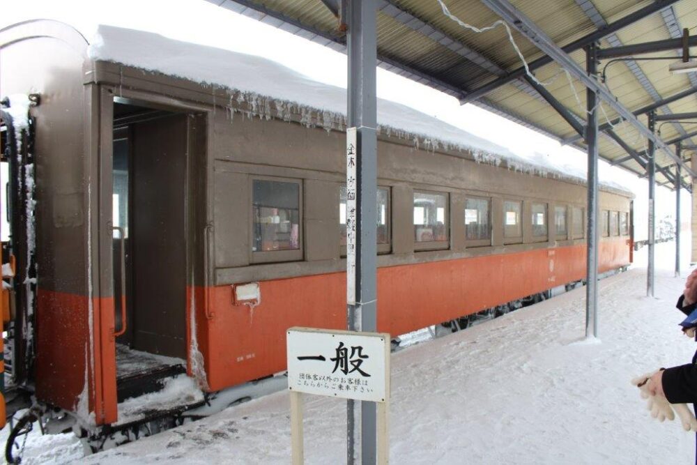 到着後駅舎へ向かいました。目的の列車はストーブ列車3号です。