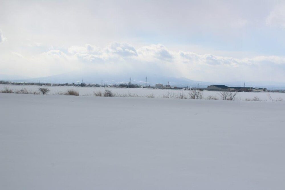津軽飯詰付近で岩木山がうっすらと見えてきました。